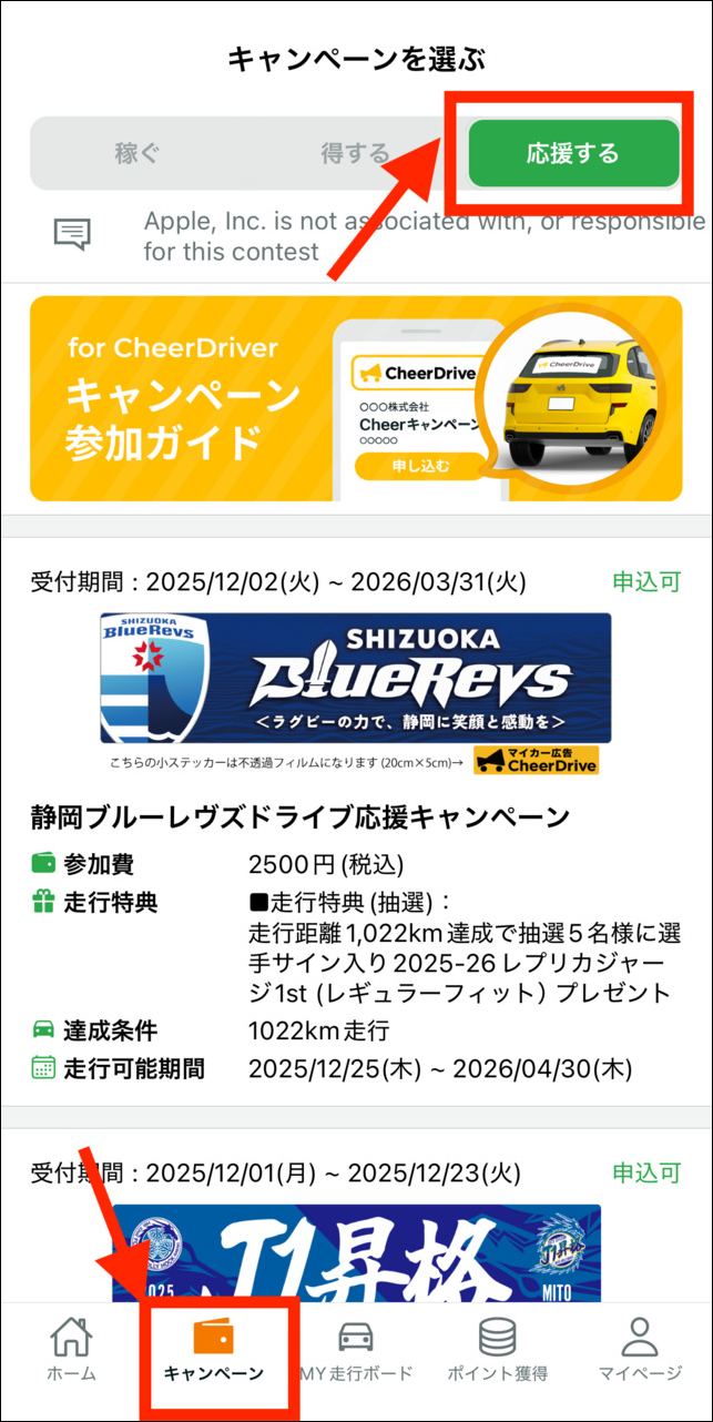 < Cheer Drive アプリからキャンペーンをお申し込み頂けます >